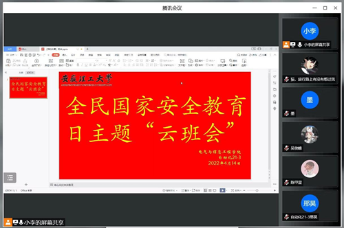 开展一次主题班会。4月11日至14日,电信学院各团支部积极召开了全民国家安全教育日主题“云班会”。云班会上,各团支部学生深入学习以习近平同志为核心的党中央关于总体国家安全观、国家安全工作的重大部署和要求,以及《国家安全法》《反间谍法》等国家安全法律和重要政策文件,探讨作为当代大学生,如何践行总体国家安全观,自觉履行维护国家安全的义务。