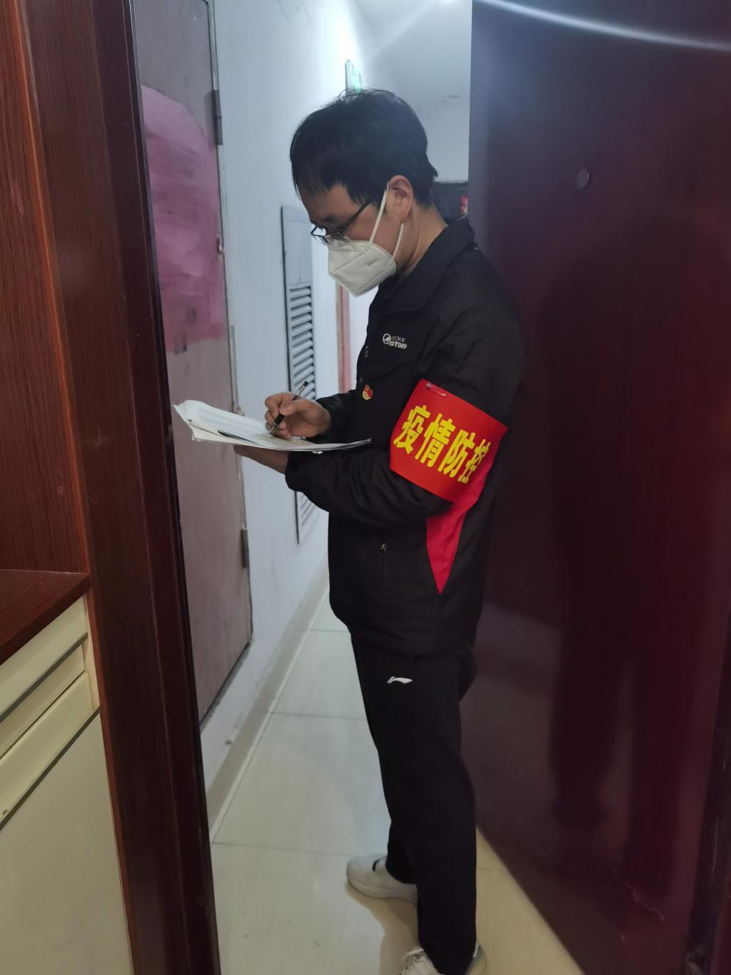 院办与实验室联合党支部党员张恭超老师在接到党组织发出的号召后也是第一时间在小区微信群报名,及时到社区报到。他严格按照“非防疫人员不得入内外出”的要求,逐一检查出入人员证件,做好“守门员”。他所在小区封闭管理后,很多居民储备物资不足,他主动化身物资“配送员”,承担起接收、分发并配送物资的工作。
