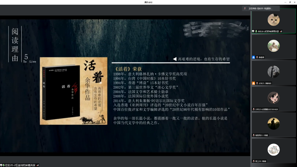 “一千个人眼中有一千个哈姆雷特”,疫情无法抵挡我们阅读的步伐,学生党支部以线上分享会的方式开展“同读一本书”主题党日活动。分享会让“1+1”的效果远大于“2”,学生在会上积极发言,分享了自己近期阅读的书目,从《明朝那些事》《万历十五年》到《活着》《解忧杂货店》等,涵盖了多个主题和题材。党支部为学生们的交流提供平台,建立四史教育、红色经典、人文素养、高效学习等多个板块,分类遴选好书,建立支部书单。