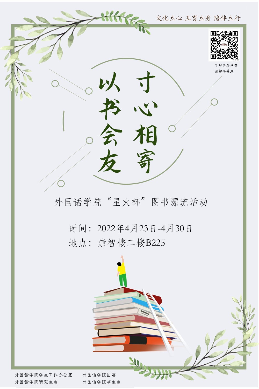 另悉,外国语学院当天还启动了第二届“星火杯”图书漂流活动,以书换书、以书会友,倡导“文化立心、五育立身、陪伴立行”,鼓励同学们增强相互尊重与信任,加强同学们之间的文化交流和思想碰撞。