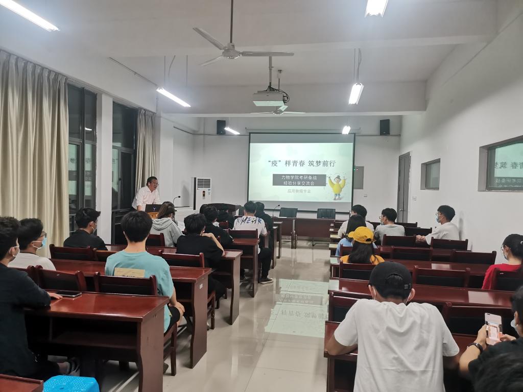 4月23日至25日晚,力物学院在明道楼报告厅分别举办了应用物理学专业、工程力学专业和光电信息专业三场考研经验分享交流会。学院党委副书记孙东升、学院辅导员、28名考取硕士研究生的学生代表和学院全体学生线上线下共同参与。
