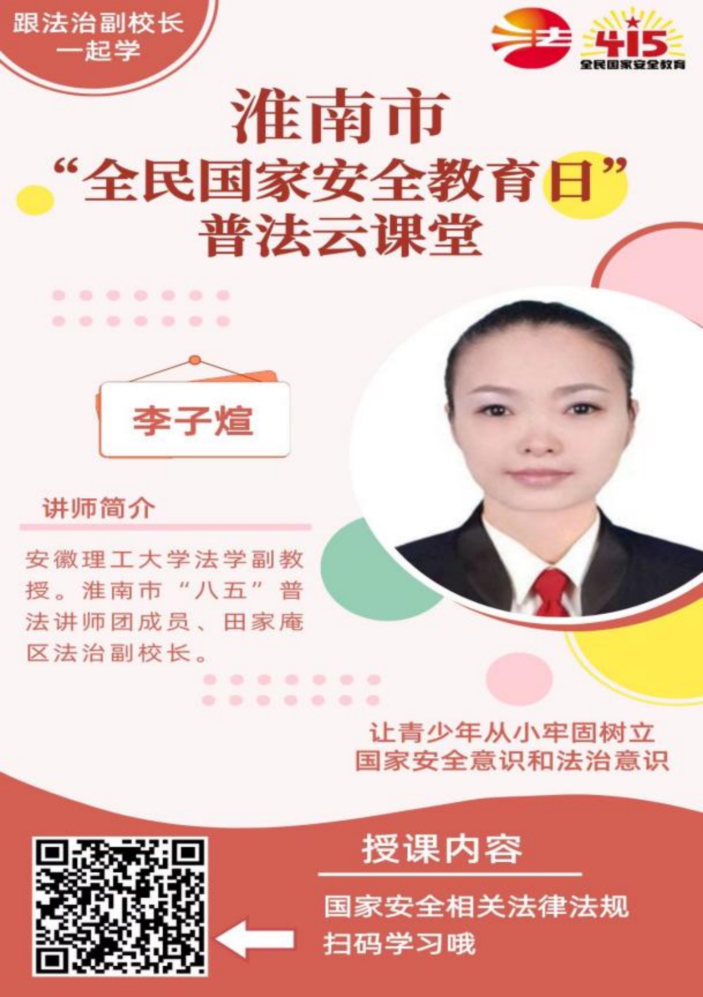 李子煊老师依据《大中小学国家安全教育指导纲要》科学设计讲座内容,针对中小学生的身心特征,按照国家安全教育的指导思想、基本原则及学段目标要求,以案例解析为线索,分四个部分,图文并茂、生动活泼地展开教学,助力青少年牢固树立国家安全意识和法治意识。