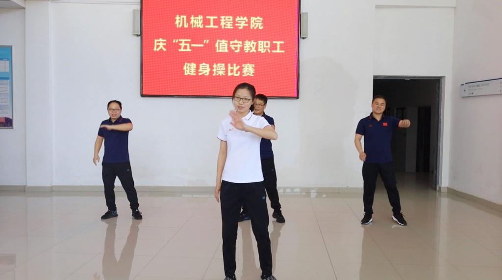 值此“五一”国际劳动节之际,为进一步营造节日愉悦氛围,丰富值守教职工业余文化生活,5月1日下午,机械工程学院开展了庆“五一”值守教职工健身操比赛,28名留校值守教职工分六组全员参赛。