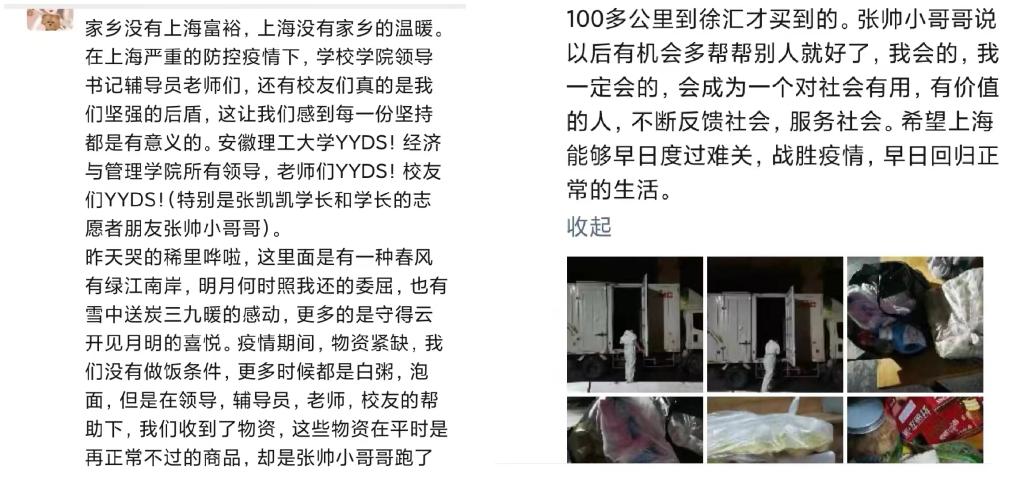 用眼睛发现感动瞬间,看得到高温下一天完成3万多份核酸检测的“大白”、在楼道里和女儿视频通话的老师;用耳朵倾听身边声音,听得到网课里传来的婴儿啼哭、视频前父母的反复叮嘱;用内心感悟默默陪伴,感受到驻校老师40天960个小时的暖心相伴、凌晨等待辅导员护送自己到医院的忐忑不安……感恩是参加12轮核酸检测时的自觉有序,是接受校友慷慨帮助后的泪流满面,是偷偷放在辅导员桌子上的酸奶,是写给校医院护士姐姐的祝福,是耐心回复妈妈的每一个问题,是好好锻炼身体,是认真刻苦学习,是自觉遵守疫情防控规定,是真正热爱我们的AUST!