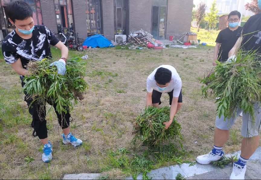 5月27日,数大学院组织学生清理校园白色垃圾和杂草,引导大学生加强感恩意识。