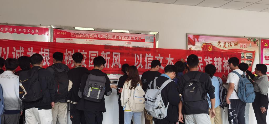 5月28日至6月2日,学院在期末考试前组织2019级、2020级、2021级同学签订考试诚信承诺书,同学们用自己的实际行动为人生记录添上一笔。
