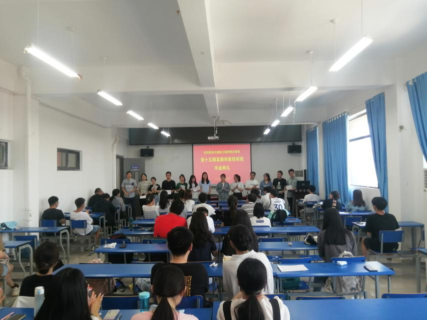 在国际歌的旋律中,空间信息与测绘工程学院分党校第十五期党员发展对象培训班结业典礼圆满结束。