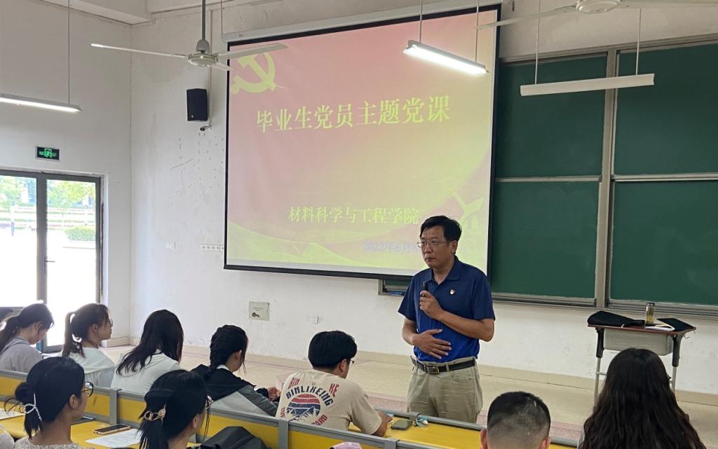 为进一步做好毕业生党员教育和管理工作,引导和鼓励广大毕业生党员坚定理想信念,发挥好党员先锋模范作用,更好地走好未来人生之路,材料科学与工程学院举办以“坚定理想信念,勇担青春使命”为主题的毕业生党员最后一次党课。此次党课由院党委书记夏邦权主讲,全体毕业生党员参加此次活动。