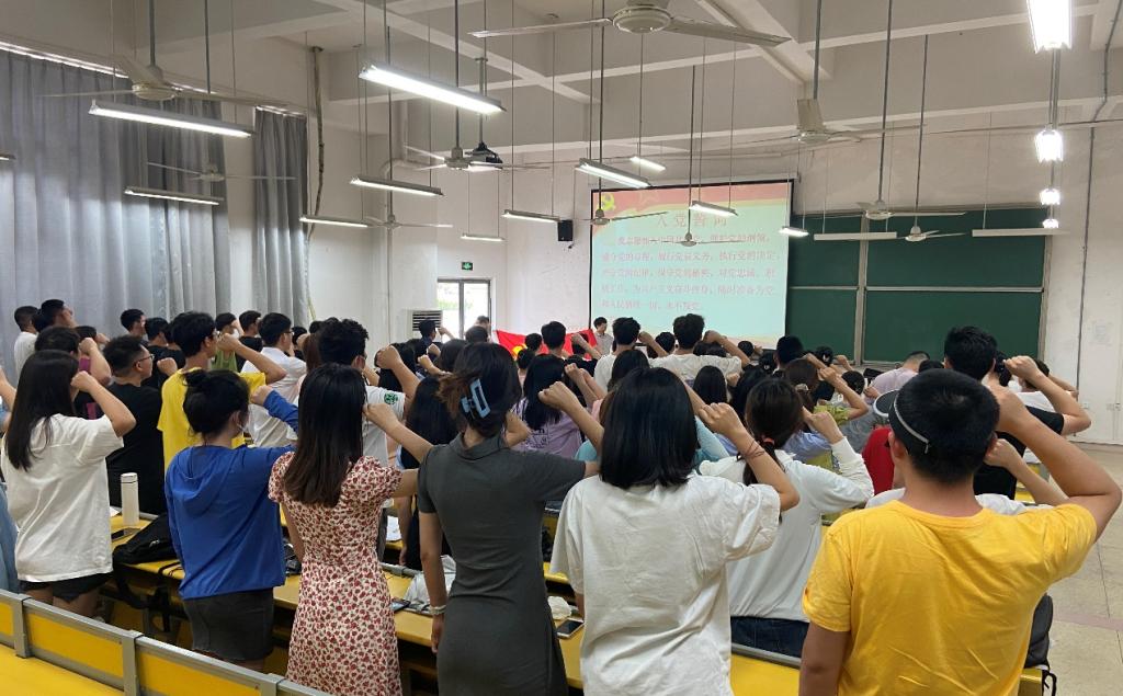 大会在庄严肃穆的国歌声中拉开序幕,毕业生党员代表庄雨带领全体党员重温了入党誓词。铿锵有力的承诺、掷地有声的宣誓,充分体现了全体党员对党的赤胆忠心,表达了永远跟党走的坚定信心决心。
