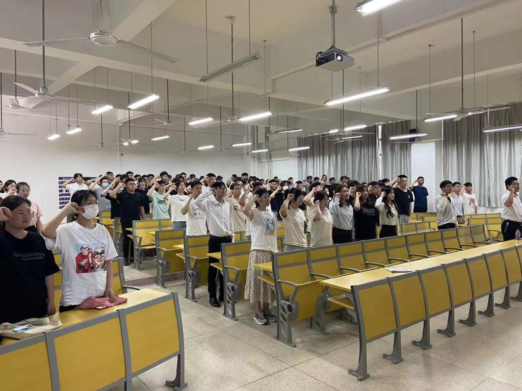6月13日下午,土木建筑学院在明理102开展了2022届毕业生党员主题教育活动。学院党委副书记张向林为毕业生党员上离校前“最后一次党课”,与会党员重温入党誓词。学院全体200余名毕业生党员同学参与了本次活动。