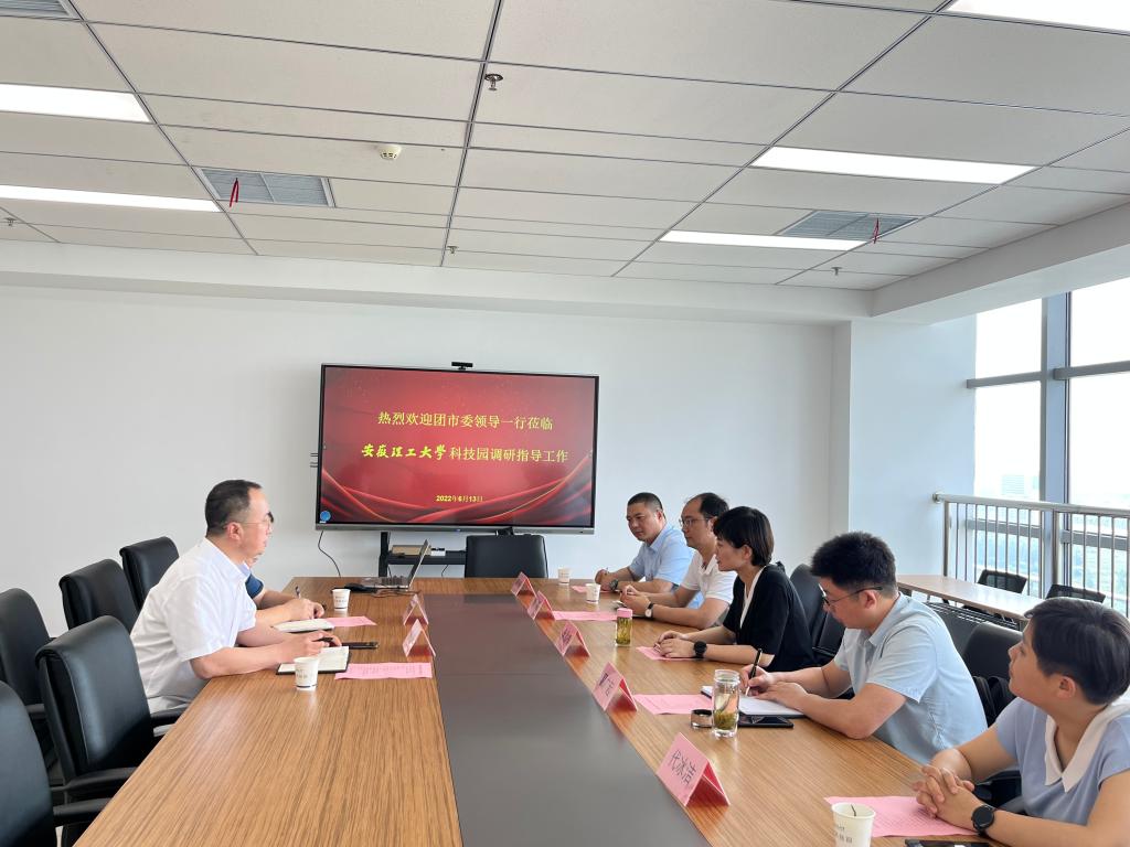 6月13日下午,团市委副书记李雪梅、葛广起、唐彬及团市委办公室、联络部负责同志一行到访我校大学科技园,大学科技园总经理黄绍服及科技园相关人员参加了交流活动。