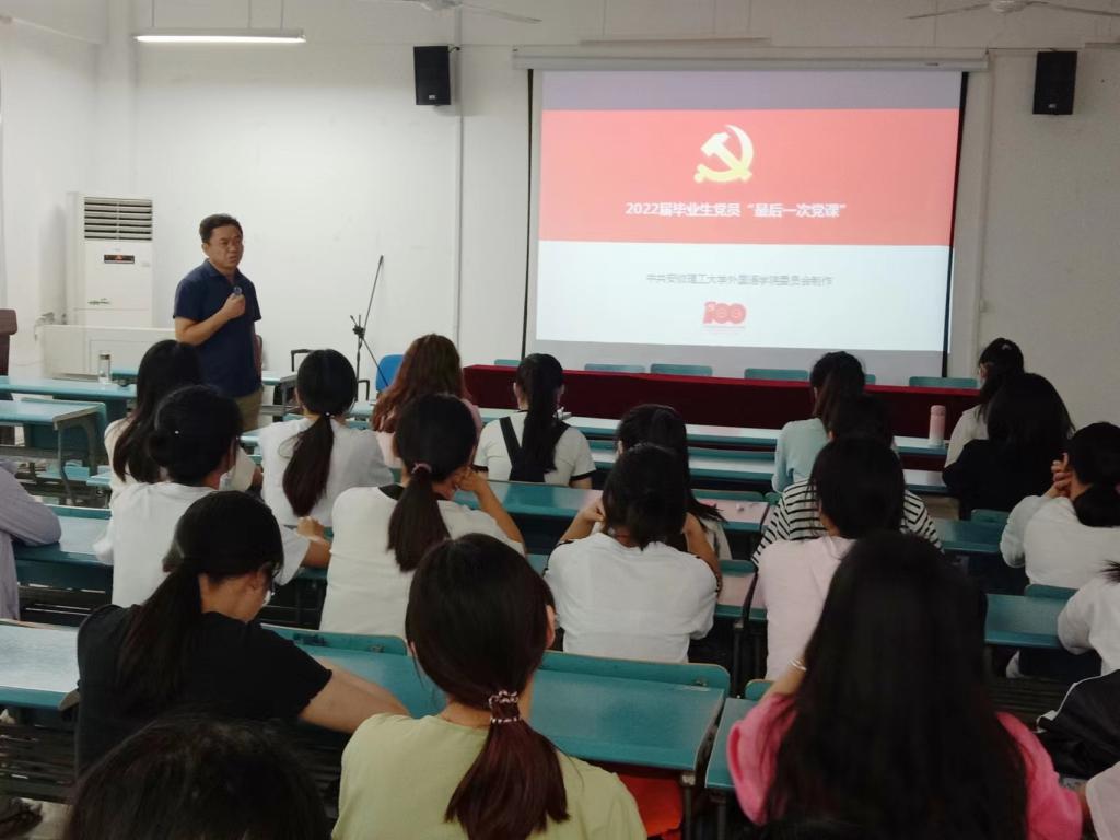 6月13日晚,为进一步做好毕业生党员教育管理工作,引导和鼓励广大毕业生党员坚定理想信念,更好地走好未来人生之路,外国语学院在崇智楼B233报告厅举行毕业生党员“最后一次党课”。党课由外国语学院党委副书记、院长王宗华主讲,外国语学院党委副书记彭晶主持,全体毕业生党员参加此次活动。