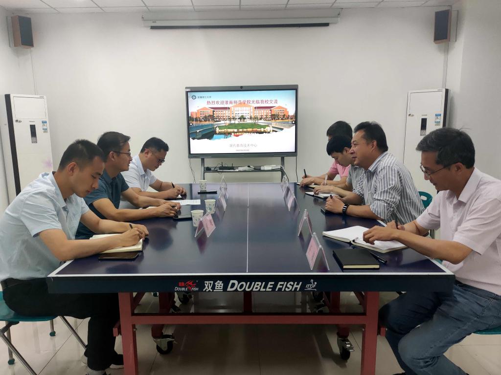 6月14日上午,淮南师范学院信息化处副处长程业红一行来校调研网络运营商合作与信息化建设工作,受到了现代教育技术中心主任王一兵的热情接待。