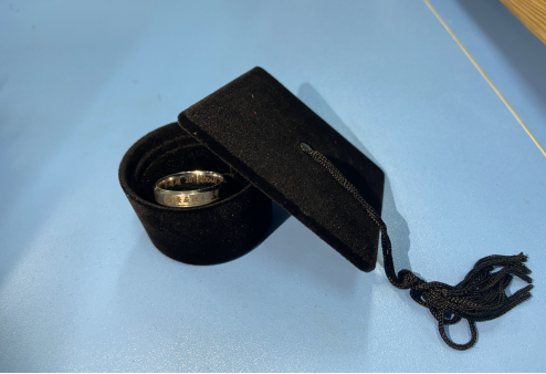 学院为2022届毕业生定制了专属纪念品——一顶学位帽(模型),内装一枚外环刻有校徽、校名,内环刻有毕业生学号、姓名的戒指,祝福2022届毕业生一“戒”书生,前程似锦。