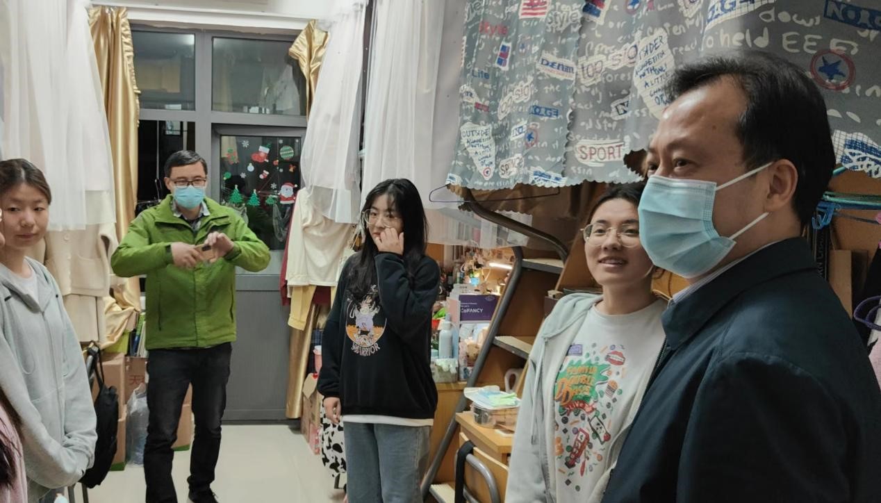 在2022届学生毕业前夕及学生离校阶段,学院领导多次深入到学生公寓,了解学生思想动态,与学生亲切交流,关心学生的学业和就业。