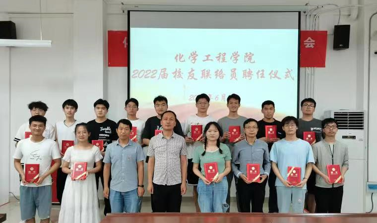 6月6日下午,化工学院在学院东102会议室举行2022届校友联络员聘任仪式。学院党委书记徐泽绵和副书记曹秀军为他们颁发证书和纪念币,希望他们履行职责,为母校校友会工作贡献自己的一份力量。