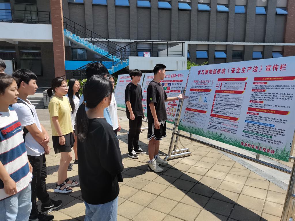 开展宣传咨询。6月16日,学院在仁苑食堂北门开展“6·16安全生产宣传咨询日”活动,活动现场摆放宣传展板,展板内容包括《安全生产法》的最新解读,安全生产知识、习近平总书记关于安全生产重要论述等内容。活动现场有安全工程专业的学生进行讲解,并现场发放安全防范宣传册,吸引了广大师生的关注。同时通过公众号、电子屏、班级QQ群等平台持续开展线上线下相结合的宣传活动,大力营造“关爱生命、关注安全”的浓厚氛围,达到了良好的宣传效果,提高师生安全防范意识。