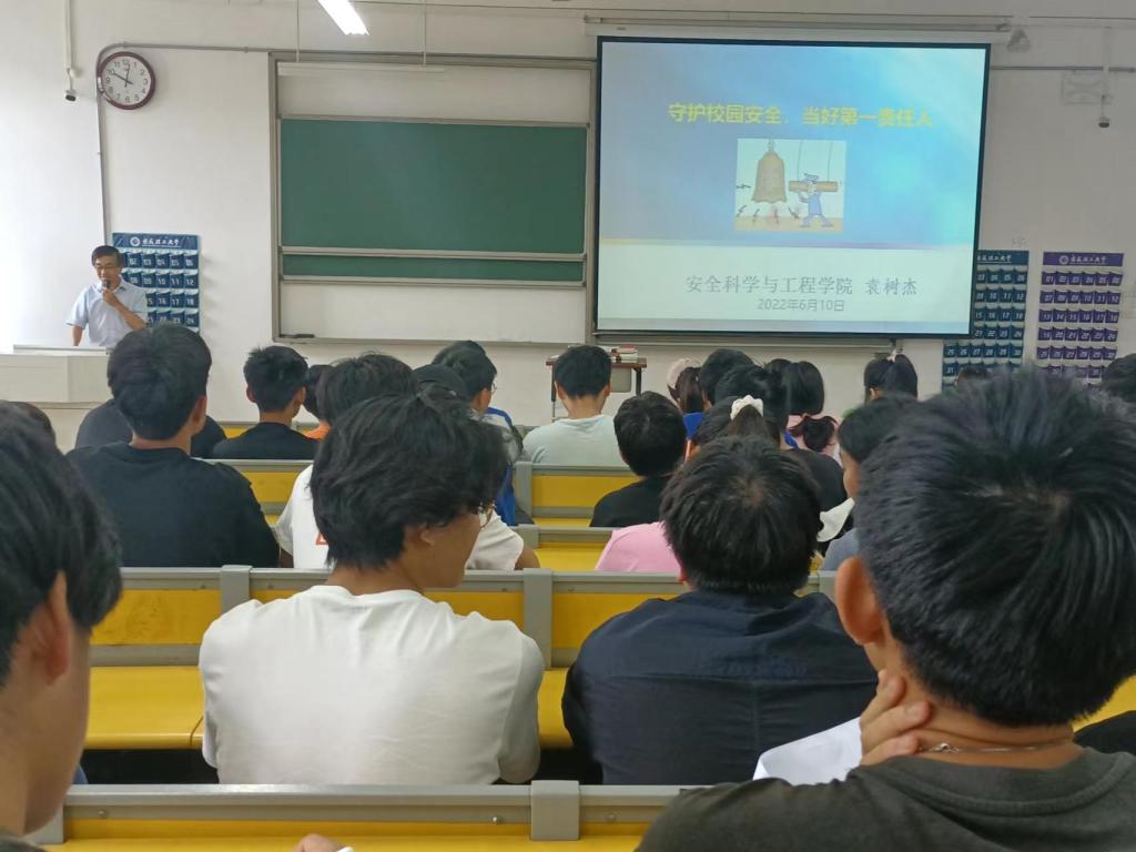 举办主题讲座。6月10日下午,学院邀请袁树杰教授、张树川副教授为同学们讲授《守护校园安全、当好第一责任人》《遵守安全生产法,当好第一责任人》主题讲座。讲座中两位老师分别结合校园事故案例和今年安全生产月主题的由来进行解读,就《中华人民共和国安全生产法》、消防安全、实验室安全、日常生活安全、医疗卫生知识、房屋市政工程生产安全等进行讲解。加强师生安全意识,提升自我保护能力。