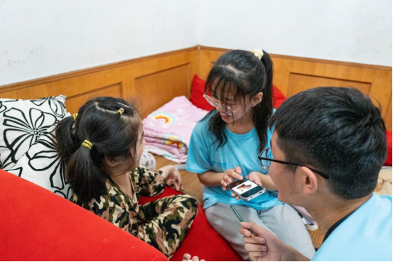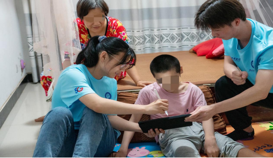 虽然不能像其他孩子那样在蓝天下奔跑,但是每个孩子都有受教育的权利。中重度残疾适龄儿童因自身和家庭原因不能走进课堂。对于这群特殊孩子,宿州市特教中心开展了“送教上门”活动。6月23日下午,实践团队跟随特教中心老师一起分别去了朱毛毛(化名)与钱婷婷(化名)家中。他们都是肌无力患者,无法到校学习。毛毛的母亲激动对来访的志愿者说,“他基本就一直待在家里,都没怎么出过门,特别盼望你们这些大哥哥、大姐姐过来。”志愿者教他写字,陪他做康复训练,一位志愿者深有感触地说:“他真的很坚强,做康复训练时,我们看着都好疼,但他一直在强忍着。”钱婷婷的肌无力症状比朱毛毛更严重,拿笔都非常艰难,志愿者就教她怎么拿笔,“她在写出自己名字的那一刻,笑的温暖人心,这让我感觉一切都很有意义”,送教上门结束后,一位志愿者兴奋地跟同伴分享这一难忘的时刻。