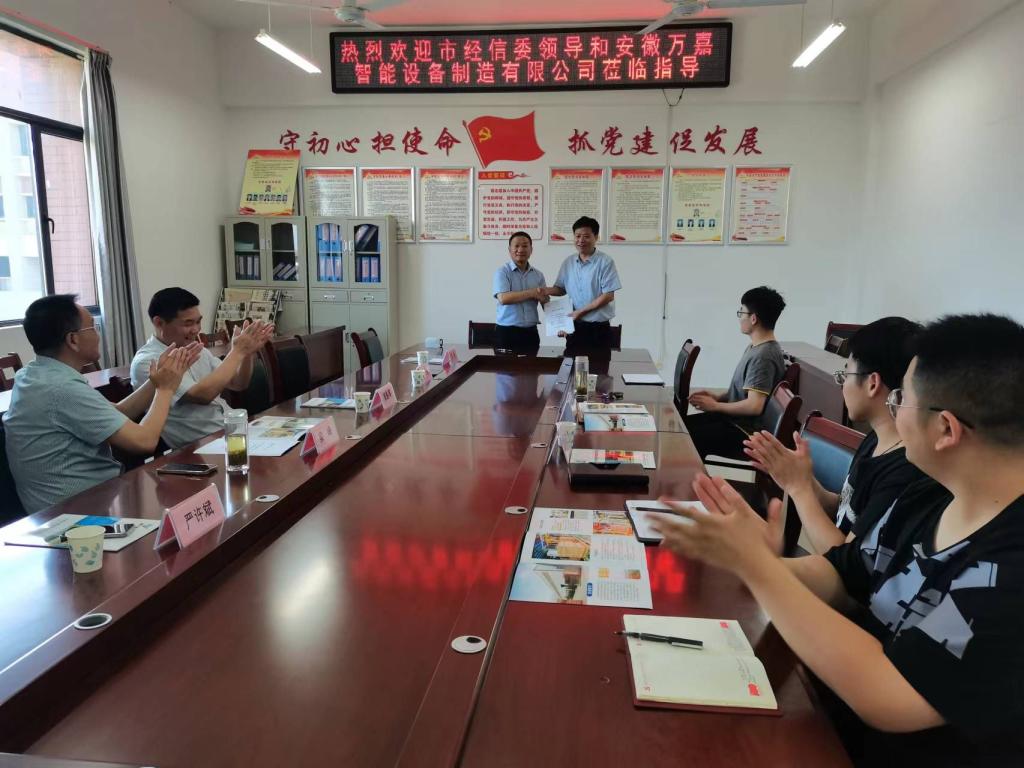 6月17日下午,淮南市经信委副主任黄善厚、安徽万嘉智能设备制造有限公司董事长严淮一行来机械工程学院就校企战略合作、教学实习基地共建等方面进行了深入探讨,并达成了合作共识。会议由学院业务副院长邓海顺主持,教师及研究生代表参加了会议。