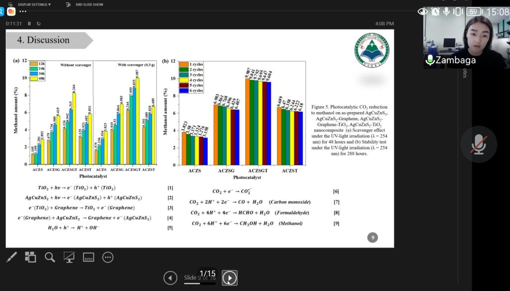 会议分两阶段进行。首先由Won-Chun Oh教授作了“Graphene-semiconductor technology toward highly improved gas & bio-sensors”的主旨报告,介绍了目前石墨烯半导体材料的发展概况、研究动态及相关科研成果,分享了课题组在气体传感器、生物传感器领域系列研究工作,并与现场师生进行了深入探讨与交流。随后,由来自韩瑞大学材料科学与工程专业硕士研究生Zambaga Otgonbayar、Md Nazmodduha Rafat以及安徽理工大学材料专业硕士研究生曹斌全、钱艳峰、王磊等同学分别结合各自研究情况围绕大会主题作了详细汇报和深入交流。