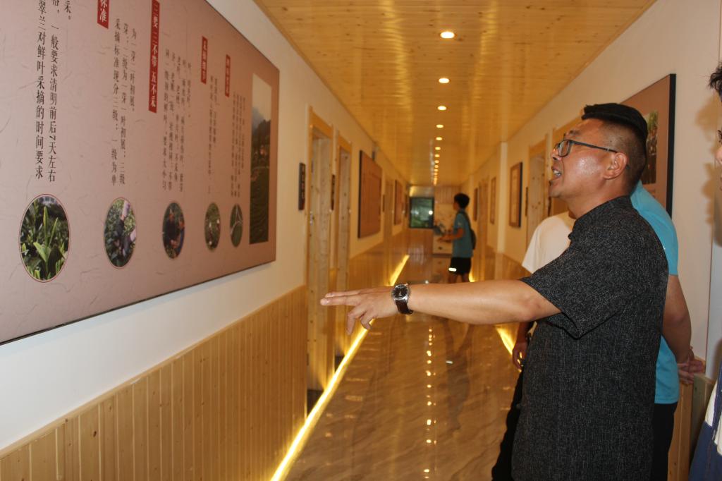 在此基础上,实践团前往全国30个最美茶园之一的石佛村有机生态茶园,在石佛村冯氏茶业总经理冯金波的带领下参观了岳西翠兰的生产车间,了解了茶叶制作的基本步骤,学习了博大精深的制茶和品茶文化。鹞落坪现有茶园总面积达6100多亩,年产干茶120余吨,年销售收入超4000万元。“我们立足资源环境优势,积极推进农旅融合产业模式,探索茶叶+民宿融合发展新路子,不断提升茶叶品牌价值,带动居民增产增收”冯金波介绍说。