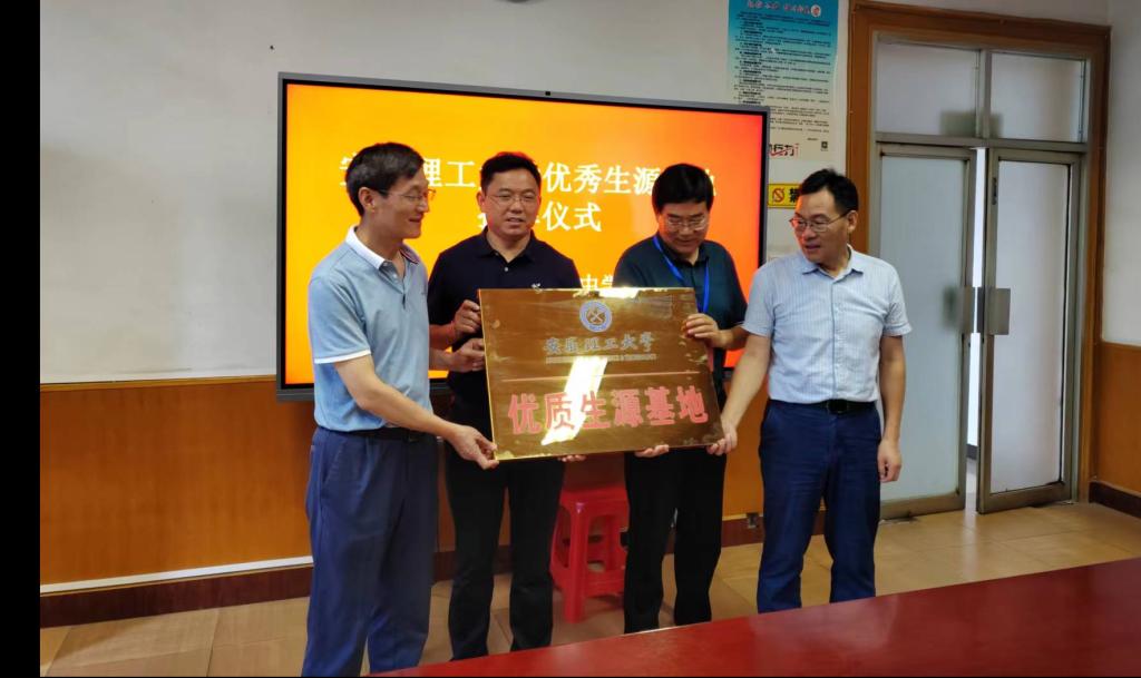 在巢湖市第二中学,张宣传从学校的历史底蕴、发展规划、学科建设和人才培养等方面详细介绍了安徽理工大学和外国语学院的基本情况,感谢巢湖市第二中学长期以来对我校招生工作的支持和帮助,肯定了巢湖市第二中学给我校输送的学生品德好、能力强、素质高,期待双方继续深化合作,建立长久友谊,推动优质生源基地建设。巢湖市第二中学副校长李远静表示,将通过两校的进一步合作交流,向安徽理工大学源源不断推荐更多更加优秀的学生。最后,双方共同签署了《安徽理工大学优质生源基地共建协议书》并举行了优质生源基地授牌仪式。