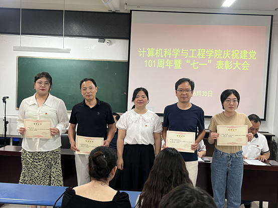 学院副院长葛斌宣读了《关于表彰计算机科学与工程学院先进党支部、优秀共产党员、优秀党务工作者、最佳主题党日活动的决定》,对4个先进党支部、7名优秀共产党员、4名优秀党务工作者和1个最佳主题党日活动进行表彰,学院领导为获奖个人和集体颁奖。