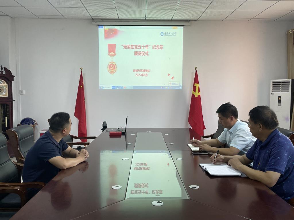 学院以线上方式为老党员宋珍炎教授开展“光荣在党50年”纪念章颁发仪式。学院主要负责同志分别向宋珍炎教授介绍了学校、学院发展的近况、“光荣在党50年”纪念章的构成及意义,以及上级党委对颁发工作的要求,对宋珍炎教授为学校、学院党的事业和学科发展作出的贡献表示感谢和敬意。宋珍炎教授表示纪念章意义重大,体现了以习近平同志为核心的党中央对老党员的关心和肯定,他将不忘初心,牢记使命,永远忠诚于党的事业,并希望学校、学院发展得更加美好。