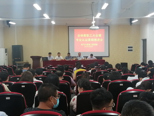 6月30日下午,电气与信息工程学院在励行楼B112报告厅召开全体教职工大会暨专业认证暑期工作推进会。学院领导班子成员及全体教职工参加会议。会议由学院党委副书记、院长周孟然主持。