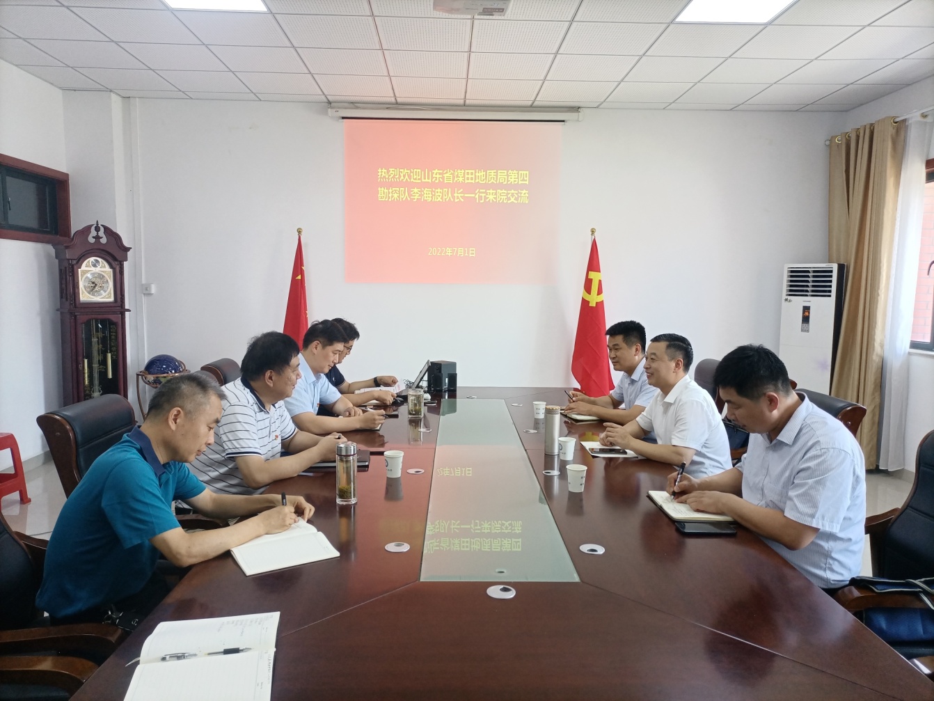 山东省煤田地质局第四勘探队副队长、总工程师刘永刚,固体矿产与水资源勘查中心主任娄术文,学院领导班子成员参加了交流座谈会。