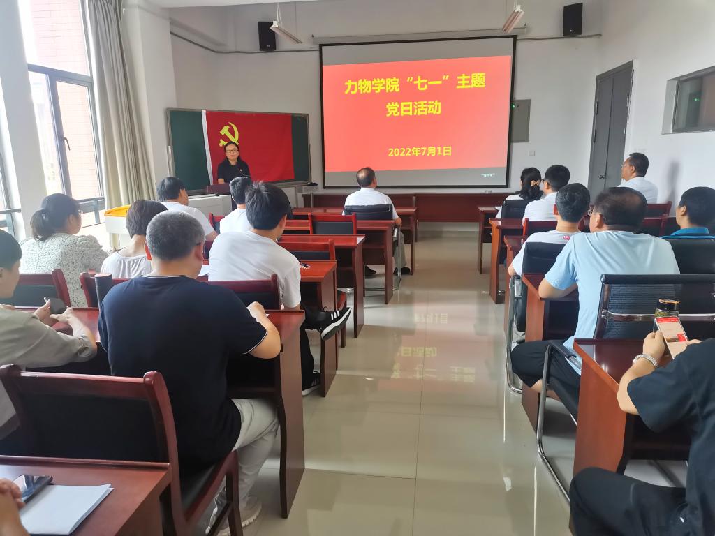 为庆祝中国共产党成立101周年,以更加昂扬的斗志、更加坚定的信心、更加扎实的作风迎接党的二十大胜利召开,7月1日上午,力物学院党委开展“庆七一”主题党日活动,学院全体党员教师参加了活动。