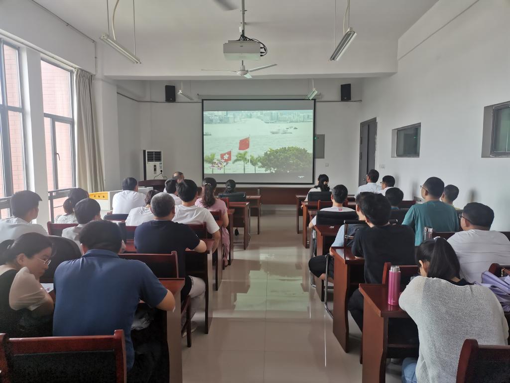 组织一次集中学习。在明道楼A323报告厅,学院党员教师集中观看了庆祝香港回归祖国25周年大会暨香港特别行政区第六届政府就职典礼,认真学习习近平总书记重要讲话精神,共同领悟“一国两制”在香港实践的丰富经验和深刻启示。曾在香港科技大学做了一年访问学者的光电物理系副教授吴宏伟说道,走过泥泞,方知大道珍贵,经历风雨,更觉阳光美好,习近平总书记的重要讲话站在国家发展和民族复兴的高度,思想深刻、内涵丰富,让人倍感振奋。