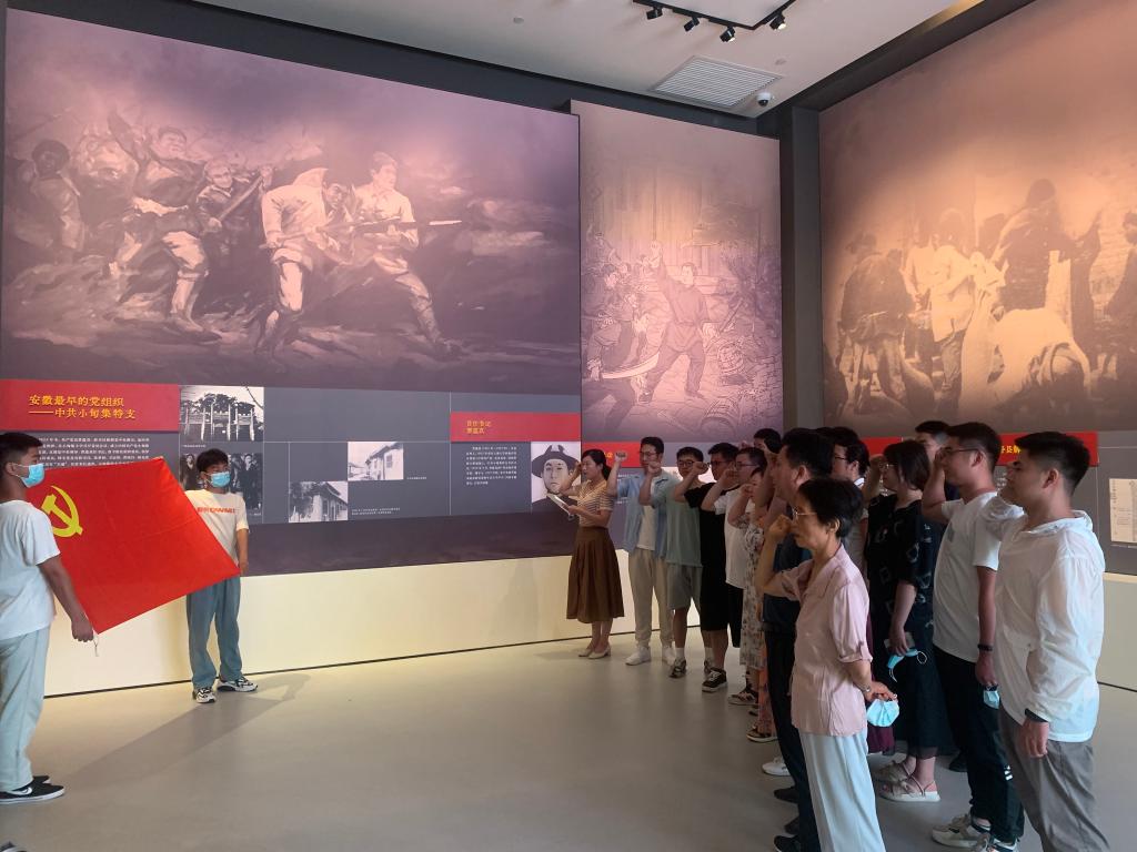 青年教师杨秀淼在今年6月17日刚刚成为一名预备党员,当在安徽最早的党组织——中共寿县小甸集特支展厅面前参加集体重温入党誓词时,他的心情非常激动,他表示,通过这种沉浸式的党建活动,重温革命历史,感悟伟大建党精神,感悟初心、践行初心,对自己未来的工作和生活都是一种激励和鞭策。