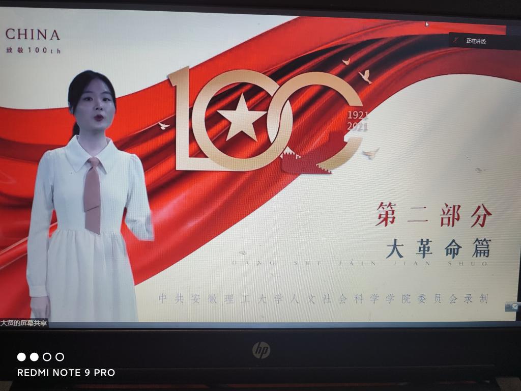 党课首先播放了学院制作的党史学习教育专题片《百年党史 苦难辉煌》。专题片选取了建党百年来100件重大事件,共分建党、大革命、土地革命战争、抗日战争、解放战争、共和国建立和社会主义建设、改革开放等7个篇章,展现了中国共产党筚路蓝缕、披荆斩棘、艰苦创业、砥砺前行的辉煌历史,诠释了中国共产党在挫折中毅然奋起,在奋斗中赢得未来,在苦难中铸就辉煌的精神品质。
