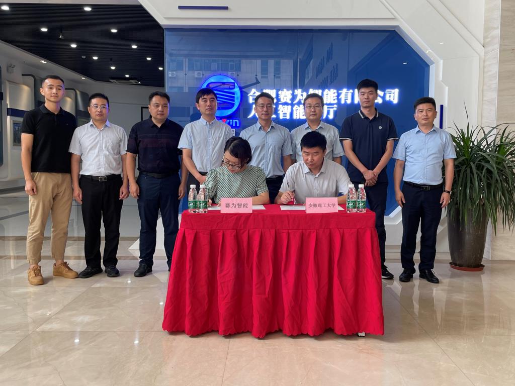 在合肥赛为智能有限公司,张旸一行与赛为人工智能事业群总经理王秋阳博士、产品中心总监汪玉冰博士就加强科学研究、就业创业、成果应用方面的合作进行了深入讨论,并代表学校与公司签订了毕业生就业创业基地合作协议,进行了大学生就业创业实践基地挂牌。