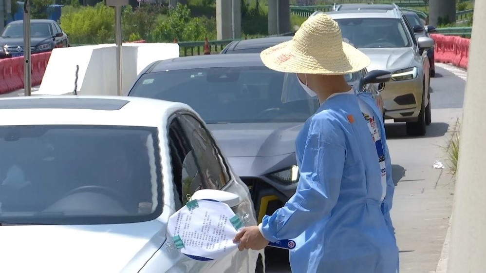 在集贤路道口,陈思晟化身高温下的卡口“守门人”,负责核验来(返)合肥司乘人员信息,引导车辆有序通行。若出现有中高风险地区行程记录的司乘人员,需进行“红牌”标记,并引导司乘人员进行核酸采样。“您好!请扫码,并出示一下健康码、行程码,谢谢配合”“核酸检测在道口外右侧”“祝您一路顺风”……遇到不理解有抵触的人,他耐心解释劝导。在查验一个卡车司机的信息时,被问到:“还是学生吗?”陈思晟点头回答道:“是的。”司机没有说话,瞬间竖起了大拇指,此时无言胜有言,得到大家肯定和鼓励,更加坚定了他参与志愿服务的信心与决心。