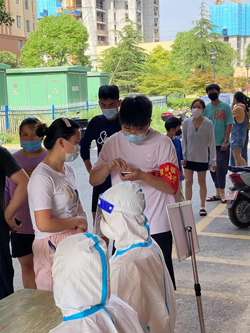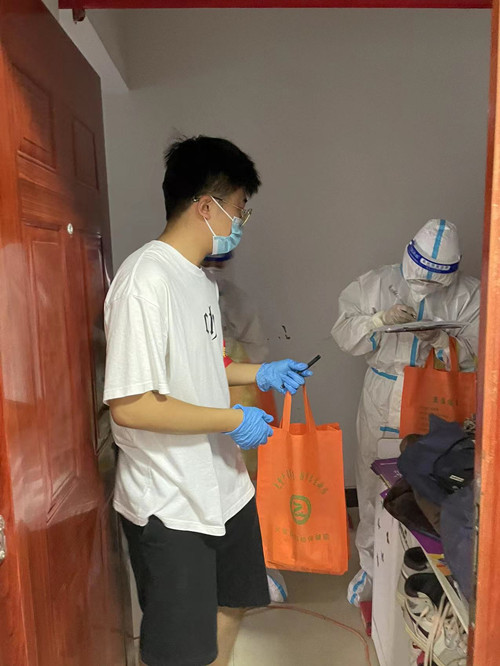 今年暑假期间,灵璧地区新冠疫情出现反弹,在收到对返乡大学生的志愿号召后,他毫不犹豫地奔赴了这场抗疫之旅,成为当地抗疫指挥部的一名大学生志愿者。入驻抗疫指挥部后,邢柯印便开展各项工作:路口设卡、入户排查、防疫宣传、摸排外来人员。清查工作细致繁琐,他与社区干部一起上门登记排查,宣讲政策,做好登记;对于不在家的住户,则悉心贴好告知通知书,要求住户主动登记。长时间高温活动,让他的衬衫汗湿了,正如感谢信中提到的:在这个骄阳似火的盛夏,邢柯印同学穿梭奔走的身影是一道最美的风最线。