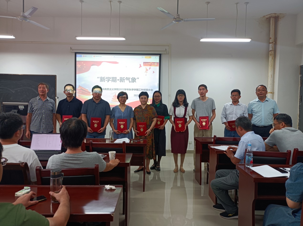 第38个教师节前夕,9月9日下午,马克思主义学院在崇智楼411召开新学期教职工大会,欢迎新入职教师,欢送荣退教师,表彰先进教师,部署新学期工作。学院全体教职工参加会议,会议由学院副院长王宏兴主持。