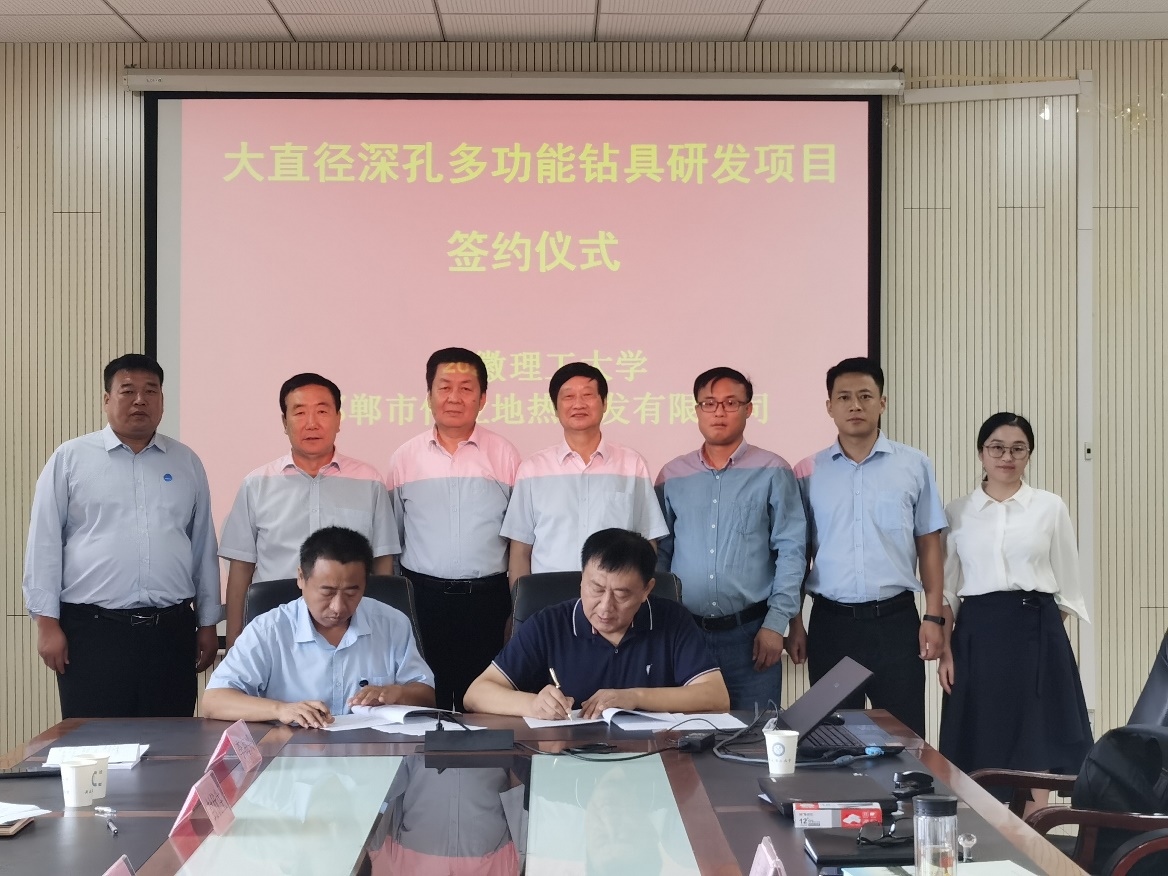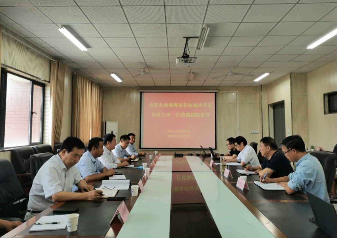 9月21日,邯郸市伟业地热开发有限公司党委书记李长福一行来地球与环境学院交流,并签订“大直径深孔多功能钻具合作研发”协议。交流会由地球与环境学院党委副书记、院长刘启蒙主持,“大国工匠”朱恒银教授出席会议。