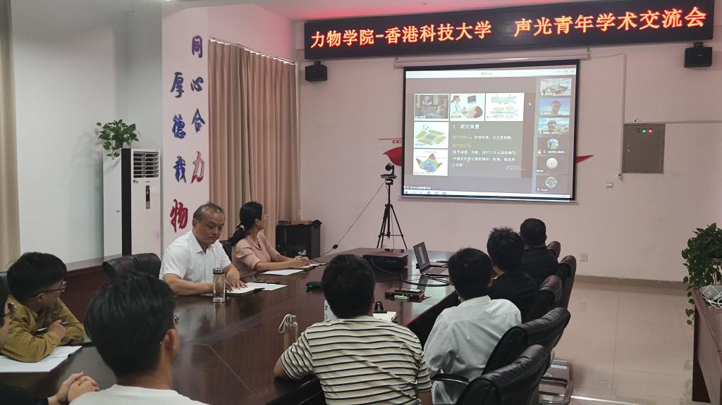 9月22日下午,力学与光电物理学院举办“声、光调控研究与应用”青年学术交流会。交流会由香港科技大学物理系与安徽理工大学力学与光电物理学院共同发起,采用线上线下相结合的形式进行。副院长(主持工作)圣宗强主持交流会,香港科技大学沈亚西副教授、朱星宏博士出席并作特邀报告,学院吴宏伟副教授、陈华俊副教授、杨永强博士、2020级研究生胡平作报告,副院长高娟、从事声光领域研究的部分教师和全体研究生参加了交流会。