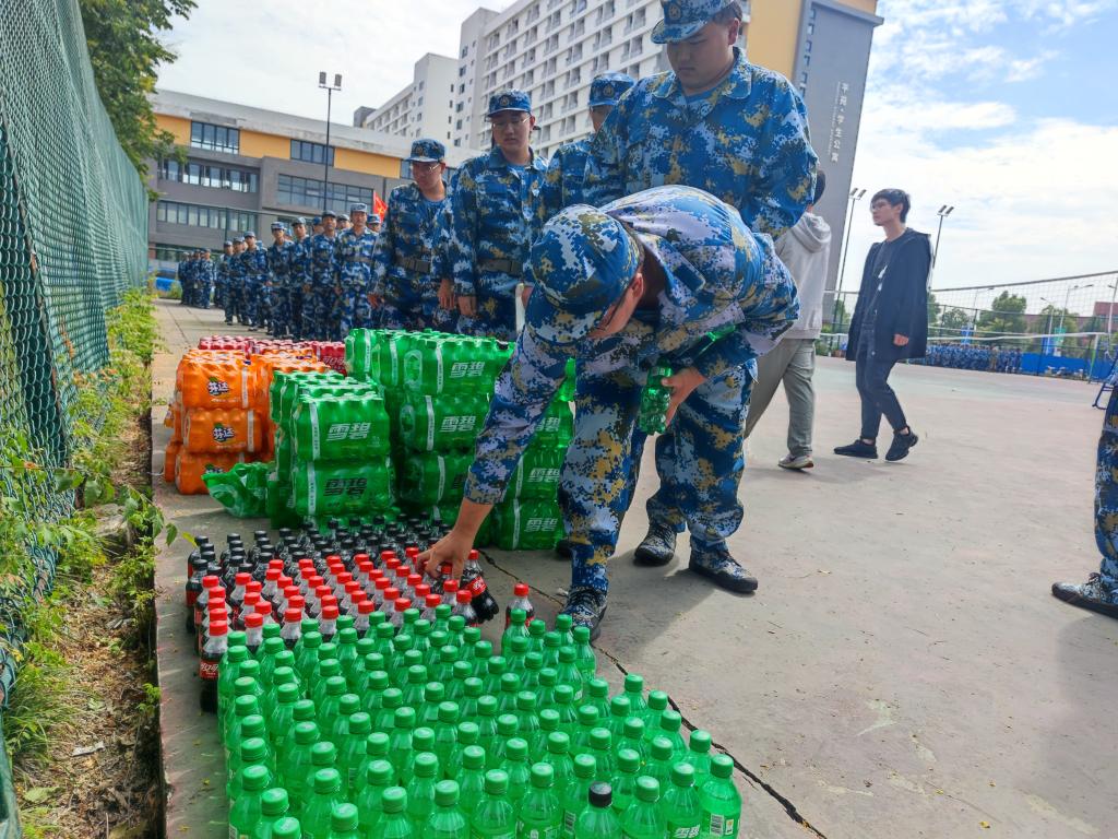 训练间歇,学院领导为新生和教官送上了军训的慰问品。