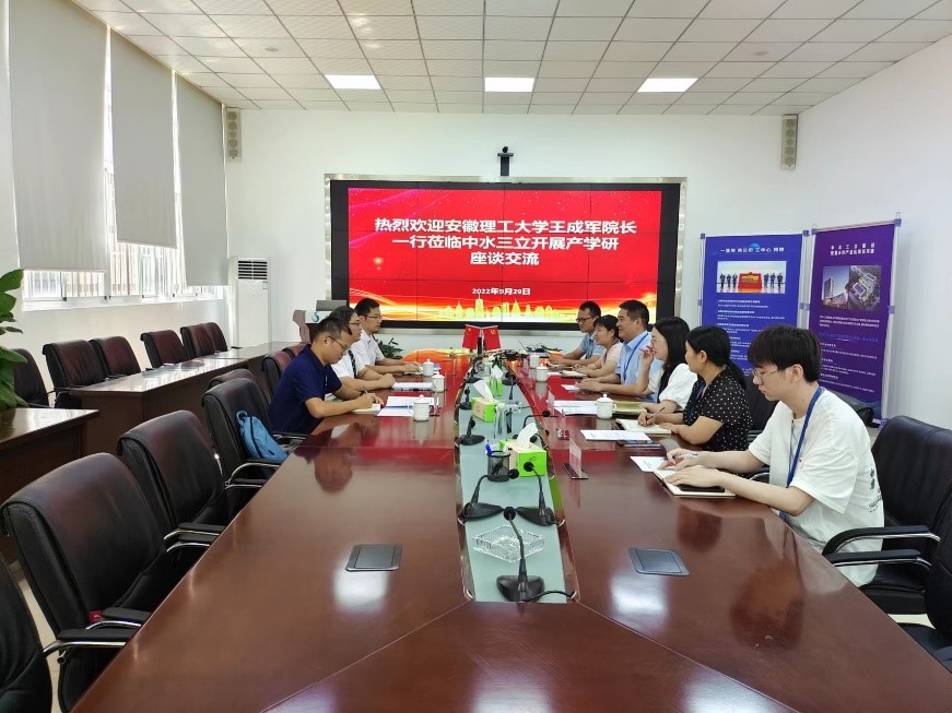 9月29日上午,人工智能学院院长王成军、副院长凌六一一行3人赴中水三立数据技术股份有限公司开展产学研合作交流。中水三立数据技术股份有限公司副总裁常仁凯热情接待了王成军一行,双方进行了友好交流。