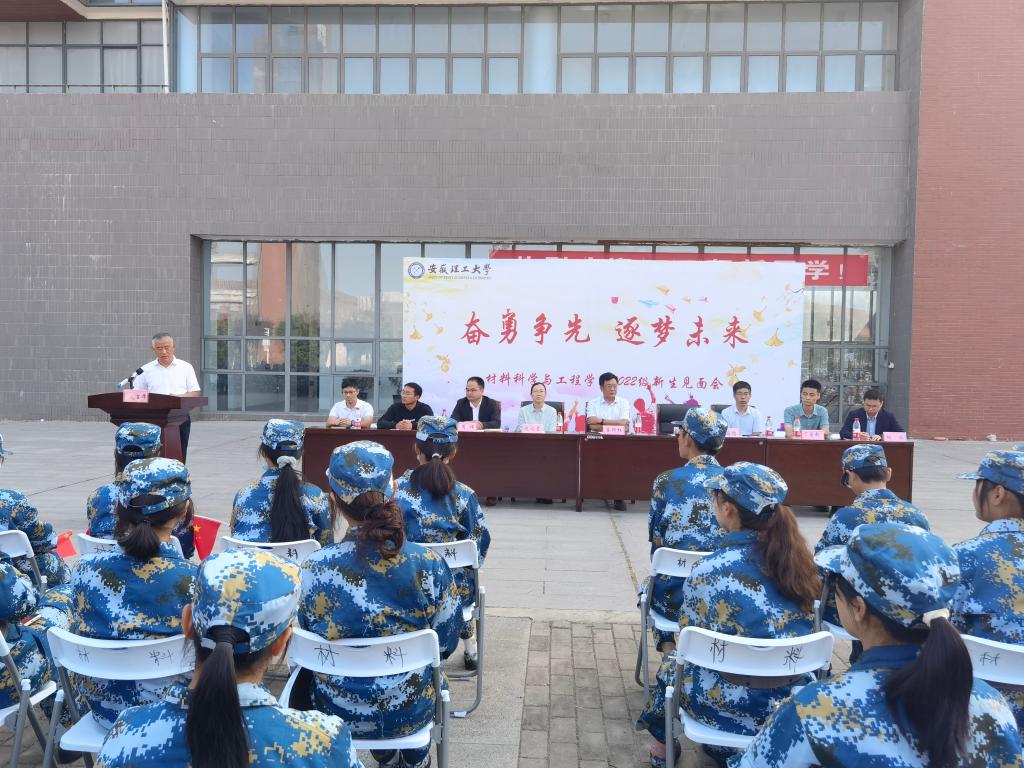 闵凡飞代表学院全体师生,对各位新安理“材料人”的到来表示热烈的欢迎,并介绍了学院的办学历史、学科建设、师资队伍、学术成果等基本情况。他以“学长”的身份讲述了自己的求学经历,分享了自己大学生活的酸甜苦辣,对全体新生提出了五点期许:一要养德,人无德不立,新时代大学生要自己养德,锤炼自身品德修为,打牢道德根基,在人生道路上才能走得更正、走得更远;二要长智,非学无以广才,既要重视知识的宽度,也要重视学习的深度,在学习中增长见识;三要健体,身体是革命的本钱,奋斗是青春最亮丽的底色,希望同学们能主动走出宿舍,走向操场,走进校园;四要赏美,新时代大学生要主动培养自己赏美、审美、创造美的能力,主动参加学校的各种艺术团体、参与各类艺术实践活动;五要勤劳,新时代大学生要树立独立自主,学会劳动的意识,成为一名德智体美劳综合发展的新安理“材料人”。