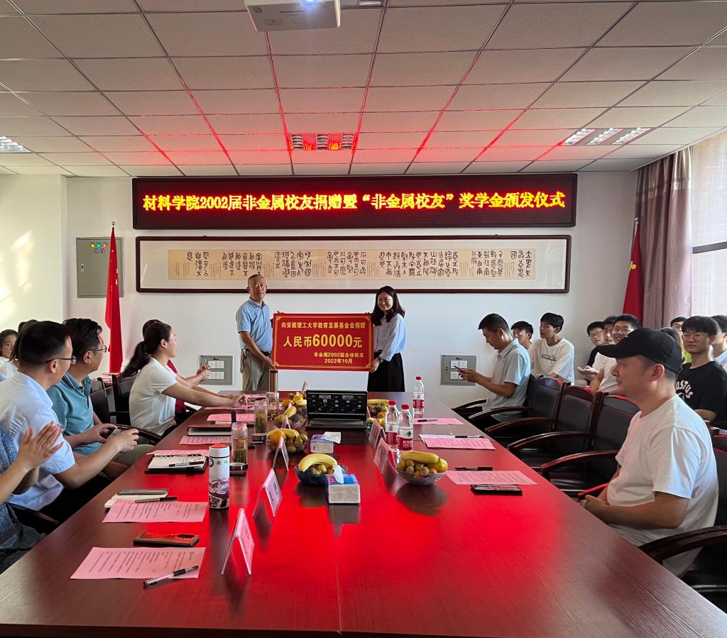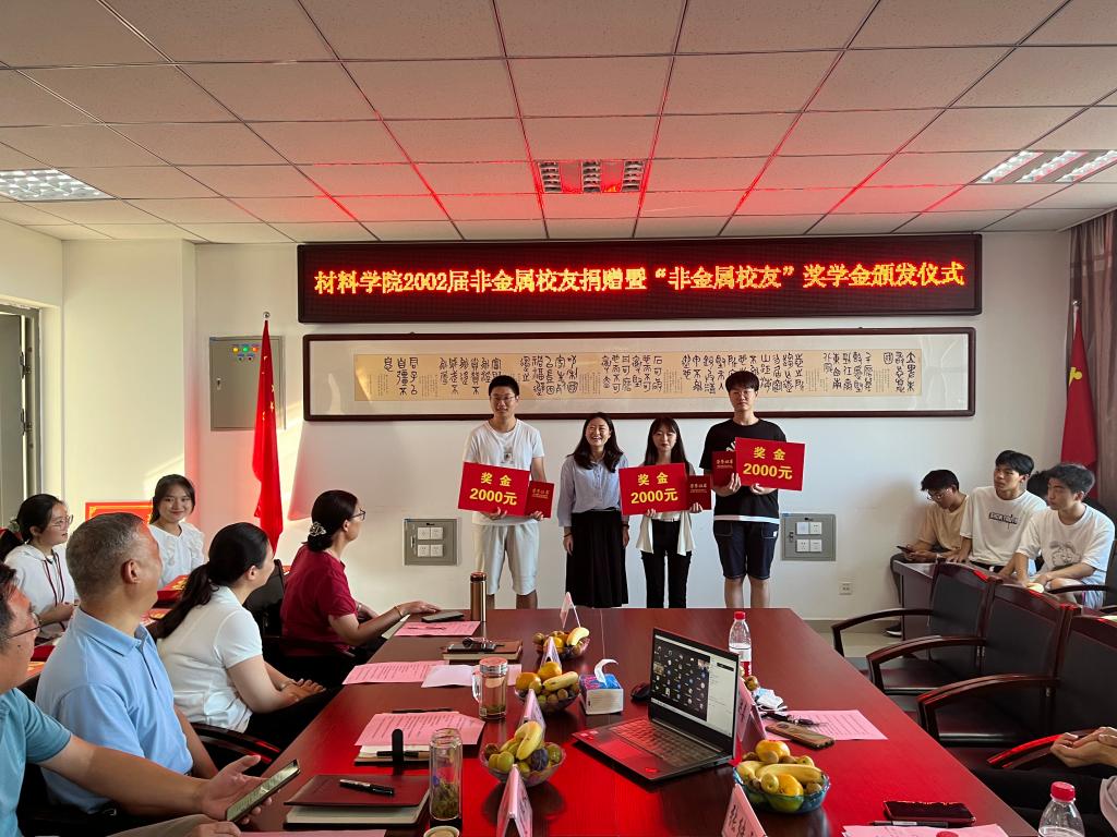 10月2日下午,材料学院非金属校友捐赠暨“非金属校友奖学金”颁发仪式在崇义楼B306举行。2002届非金属校友张继霞、2000届选矿机电校友冯政广、空间信息与测绘工程学院党委书记范洪喜应邀出席,各年级非金属校友线上参会。学院领导班子成员、无机材料与资源循环系主任、教师代表、非金属各年级学生代表参加仪式。仪式由学院党委副书记陈向君主持。