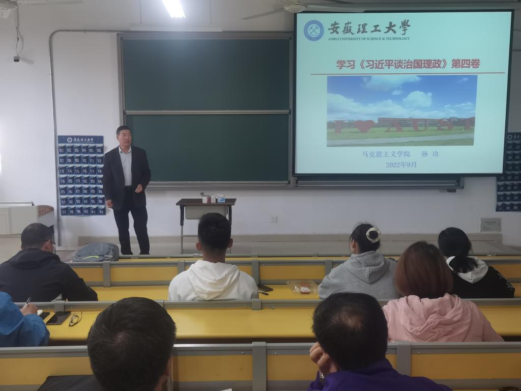 孙功从“历史方位”“根本问题”“哲学方法”“总体框架”“原创贡献”“新的亮点”六个方面对《习近平谈治国理政》第四卷进行了系统讲解。讲座主题鲜明、视野宽阔、内涵丰富、深入浅出,既体现了深厚的理论素养,又融入了深邃的现实思考,对体育部全体教师更好把握习近平新时代中国特色社会主义思想的核心要义、精神实质、丰富内涵、实践要求,推动党的创新理论走深走实走心,具有很强的指导作用。