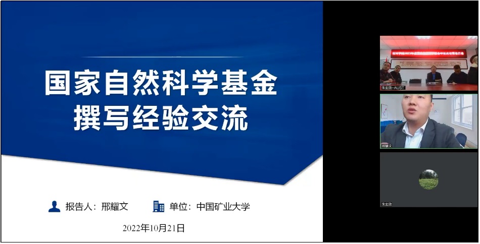 为进一步帮助教师提升国家自然科学基金申报书质量,督促教师更好凝练科学问题,材料学院于10月21日在崇义楼B306会议室举行了2023年度国家自然科学基金申报启动暨培训会,邀请了中国矿业大学邢耀文教授在线为学院教师进行基金申报书撰写辅导。学院院长闵凡飞和学院60多名教师线下和线上参加了会议。会议由材料学院副院长刘令云主持。