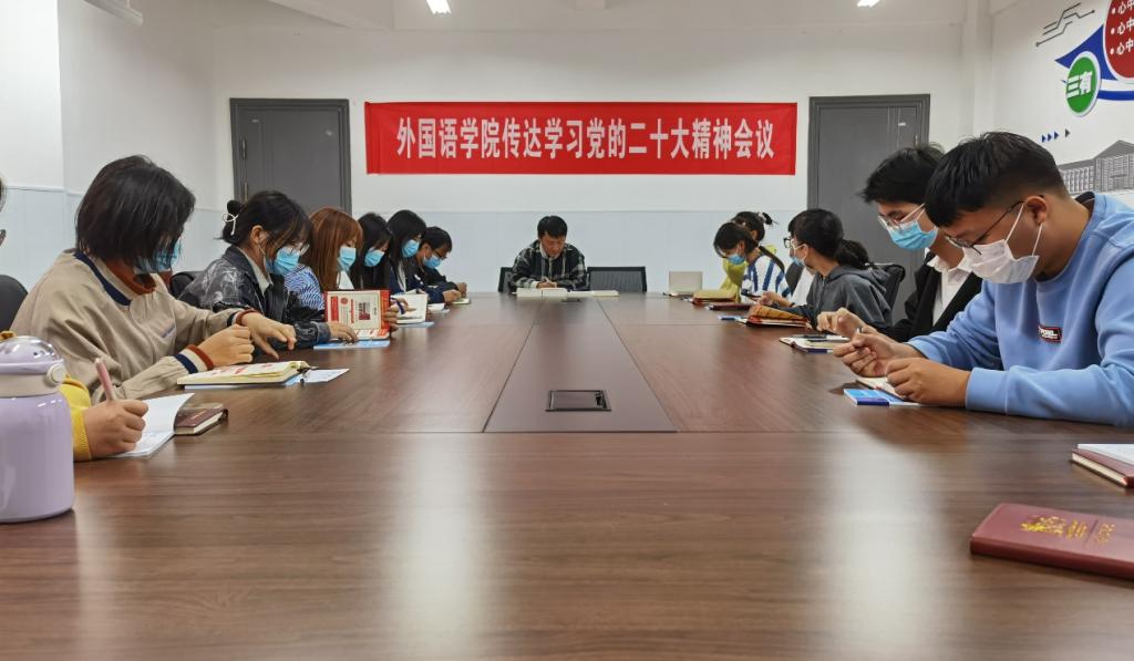 10月30日下午,外国语学院在崇智楼B203会议室召开传达学习党的二十大精神会议,落实学校和学院党委传达学习党的二十大要求,对全院学生宣传贯彻党的二十大精神进行动员部署。会议由学院分管学生工作负责人主持。