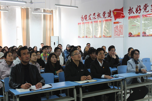 学院党委领导班子成员、党支部书记、学生辅导员、教师党员、在校学生党员和部分学生发展对象听取了报告。