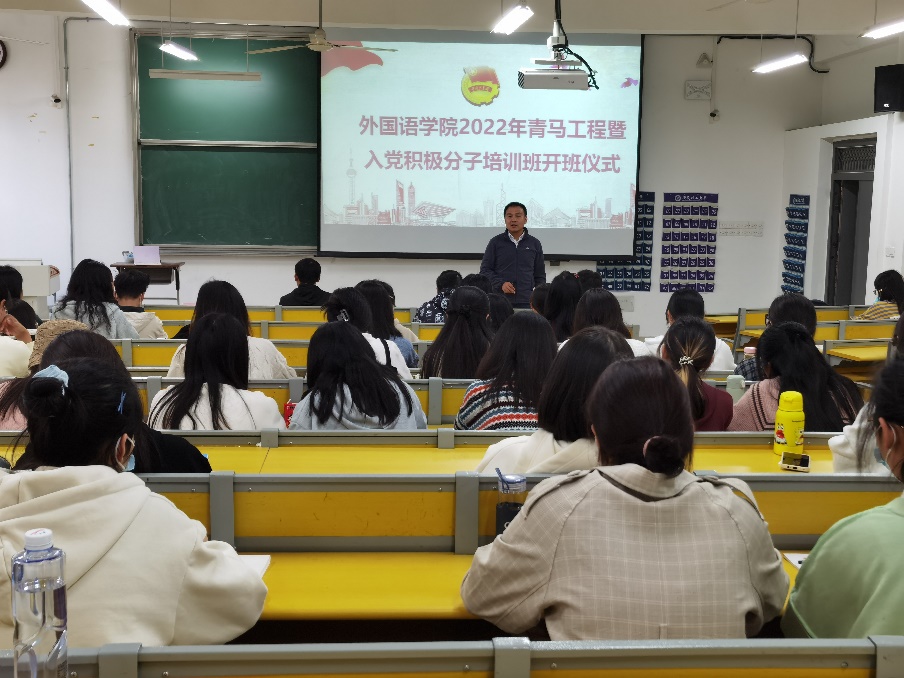 11月4日下午,外国语学院在明理北314教室举办2022年“青马工程”暨入党积极分子培训班。外国语学院和人工智能学院的入党积极分子、2022级新生各班级学生骨干共115人参加本期培训。